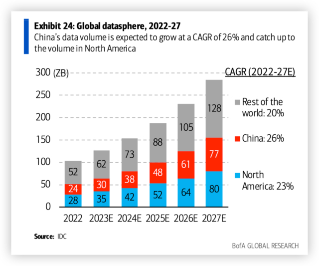 预计中国增速将超过全球平均水平,年复合增长率在此期间为26%,到2027年将达到77兆字节。尽管如此,中文数据的质量仍然需要通过大量的数据处理、服务和清理来提高。中国的互联网巨头拥有无与伦比的优势,包括旗下产品带来的专有数据和更强的数据处理能力。