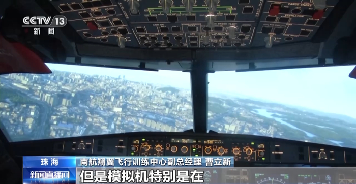 南航A320机型机长 翔翼专职飞行标准教员 李明:对于航空公司来说,用模拟机来替代真实的飞机,有利于节省成本,有利于让飞行员能够短时间去训练出航空公司需要达到的技术水平。