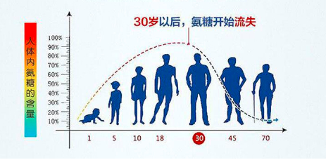 “人老腿先老”!到了30岁后,身体机能开始逐渐减退,组成关节软骨细胞的重要成分氨糖严重流失,70岁后体内氨糖几乎消耗殆尽。