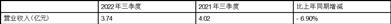 2、2022年三季度与2021年三季度营业收入情况对比