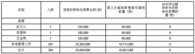 1、本次符合解锁条件的激励对象共计394人,可解锁的限制性股票数量为10,851,082股,占目前公司股本总额的0.1545%;