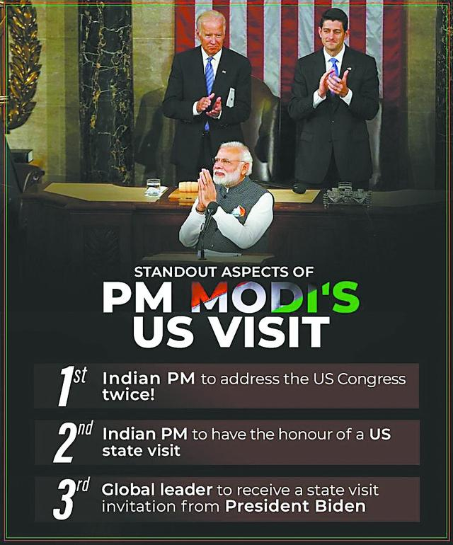 印度报业托拉斯20日称,在莫迪之前,只有印度前总理辛格于2009年11月被邀请到美国进行“国事访问”。根据印度政府公布的日程,莫迪21日将在纽约联合国总部主持国际瑜伽日活动;22日,拜登将在白宫接待莫迪,后者将在美国国会联席会议上发表演讲。印度政府称,这将使莫迪成为首位两次在美国国会发表演讲的印度总理(上次是2016年6月)。印度外长苏杰生说:“没有任何一位印度总理在美国国会发表过两次演讲,在世界各地,也只有少数人这样做过……包括丘吉尔、曼德拉。这就是为什么它如此重要。”