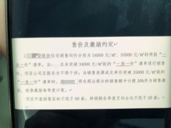 中梁厦门公司人士介绍,经协商,代建方提出可按3.4万元/平方米的价格销售,但厦门国际信托方面提出,销售价格超过3.5万元/平方米以上,要对项目溢价部分进行30%的抽成,销售激励每季度计取。