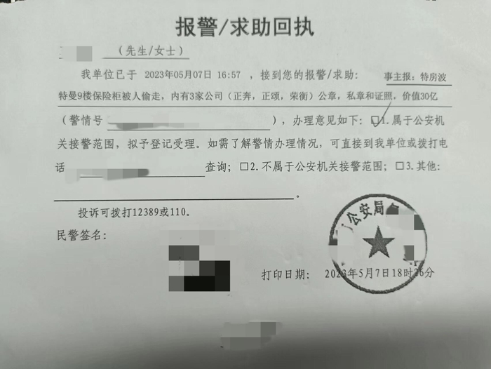 “若经查实确如你方所述,系你方在背后指使、教唆相关人员实施盗窃、擅自转移、控制保险箱及箱内证章照等重要资料,那么你方及相关行为人、责任人应承担相应的民事、行政甚至刑事法律责任。” 上述律师函称。