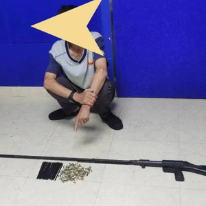 6月14日下午,民警在刘某平自家橡胶地将其抓获。经初步询问,刘某平如实交代了自己在网络购物平台购买零部件组装射钉枪的过程,并上交疑似枪支一把、铁砂若干、射钉弹14颗。