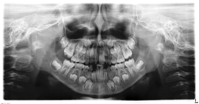 我们先给小朋友拍个全景片看一下是不是有多生牙吧。