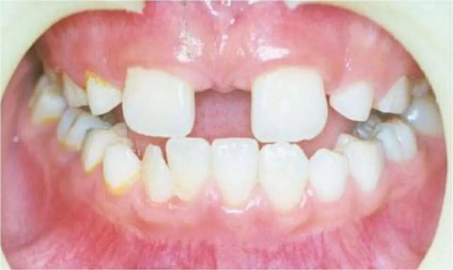 医生,我家小孩8岁多了,这两颗上门牙换了很久了,缝隙怎么还这么大啊?