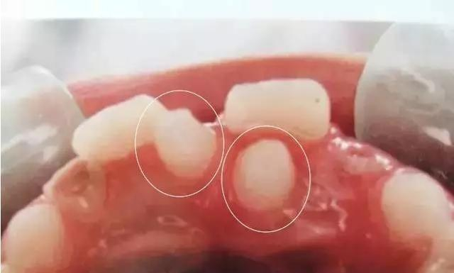 4.由于中线处存在多生牙使上切牙萌出延迟者,应在不影响恒牙牙根发育的情况下,拔除多生牙。在手术过程中,可将延迟萌出的牙齿切1/3的骨和软组织去除,并保持开口,以利于牙齿萌出。
