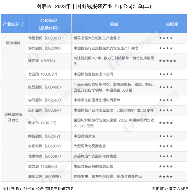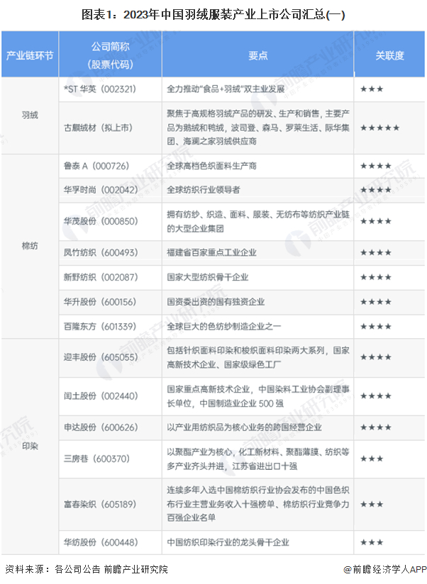 1、羽绒服装产业上市公司汇总