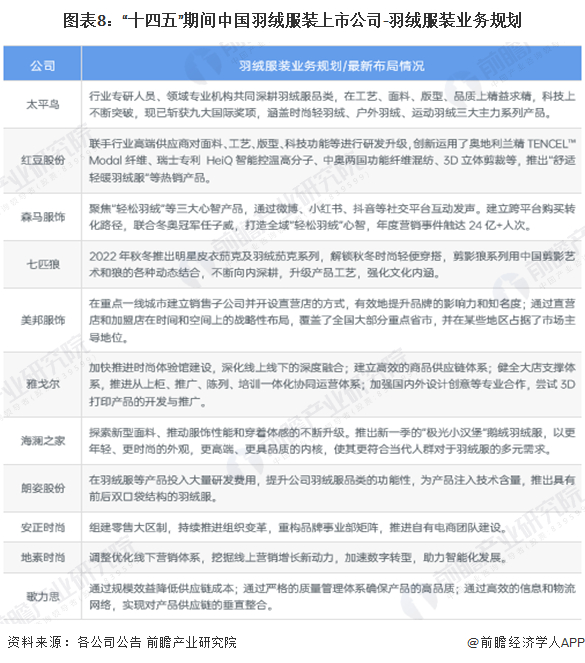 4、羽绒服装行业上市公司羽绒服装业务规划对比