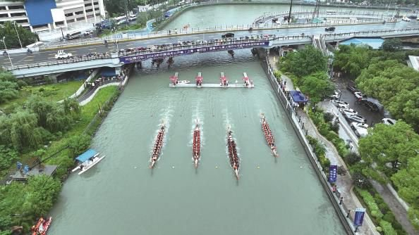 龙舟竞渡、百舸争流,普陀区在苏州河上奏响了一曲乘风破浪、奋楫争先的“水上交响乐”。
