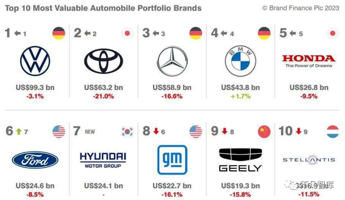 相信大家都知道,很多知名的汽车品牌都属于同一个汽车集团。在一个集团内,多个品牌可以共享技术和设计资源,以快速推出更具竞争力的产品。此外,集团还可以通过品牌组合满足不同消费者的需求,提高市场覆盖率和品牌知名度。所以下面我们就来盘点一下2023年品牌综合价值最高十大汽车集团。