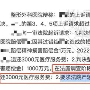 2020年,北京的林女士(化名)到北京某整形专科医院做“双眼皮”手术。术后1年发现没有达到自己想要的效果,且手术部位出现不正常的颗粒摩擦感,非常不适。她在向医生反映上述情况后,经过强烈要求,医生同意进行修复手术。经过两次修复手术,患者林女士认为仍未达到双方术前沟通的效果,且不适症状持续,彻夜失眠。2022年,林女士一纸诉状将院方告上法庭,在法庭调查阶段,林女士最终明确其诉讼请求为:1.判决整形外科医院退还3000元医疗服务费;2.要求法院严惩医院,枪毙主治大夫。