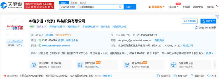 6月21日下午,华信永道(北京)科技股份有限公司(以下简称“华信永道”,股票代码:837592.BJ)向不特定合格投资者公开发行股票并在北交所上市网上路演在全景路演举行。
