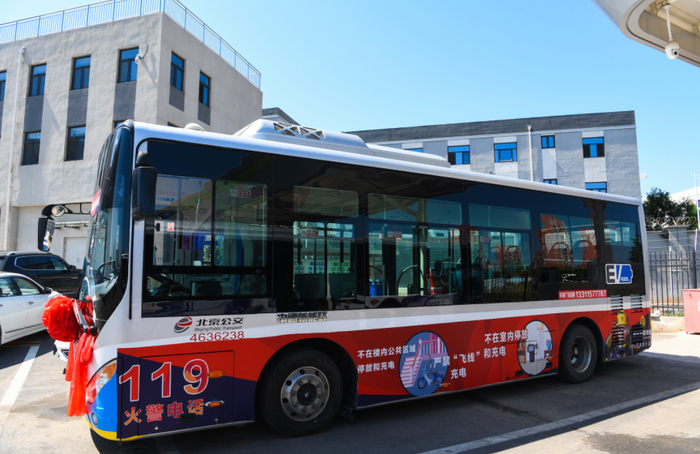 “乘客您好!欢迎您乘坐T8路特色消防主题公交专线,本次公交车由关辛庄村开往末站北京物资学院站,本台车的消防安全主题是‘关注电动自行车消防安全,电动自行车及蓄电池不进楼,不入户,不飞线充电’,车辆行驶途中,请您扶稳坐好,注意安全。”6月21日上午,北京城市副中心客运公司联合通州区消防救援支队,在施园场站举行特色消防主题公交专线启动仪式。