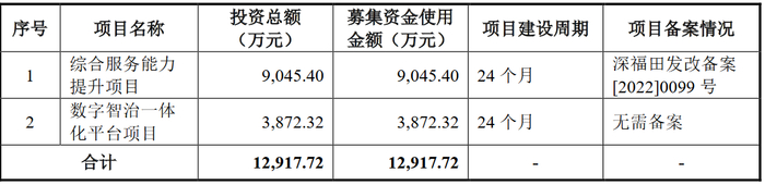 按照规划,所募资金扣除发行费用后,将全部用于综合服务能力提升项目以及数字智治一体化平台项目。具体来看: