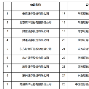 从名单内容来看,31家券商中既包含中信、中金、国君、银河等头部券商,亦包含兴业证券、华鑫证券等特色券商,高盛高华、瑞银证券等外资控股券商。此外,本次东方证券、东方财富、国联证券、财通证券和西部证券等五家也最新上榜。