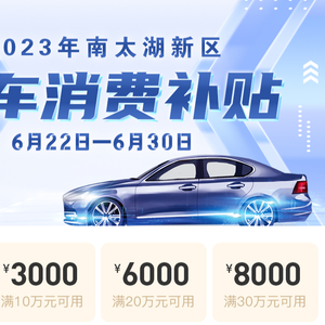 汽车消费补贴将于6月22日—6月30日每天上午9点发放,限额发放300万元。活动期间若补贴额度使用完毕即该活动提前截止。