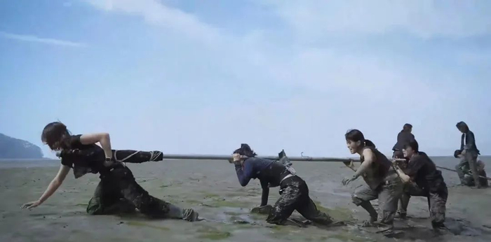 在这个颇为挑战体力极限的过程中,赢反而被忘记了,完成任务是另一种胜利。她们专注在自己的节奏里,累了就停下来休息、呼吸,而等队长一发出“开拍”指令,便又立刻步调一致地投入回状态里。