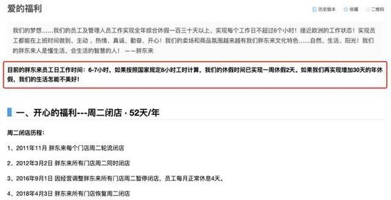 其官网显示,公司的梦想是员工及管理人员工作实现全年综合休假130天以上,每天工作不超过6个小时,接近欧洲的工作状态。目前,胖东来员工日工作时间为6至7小时。