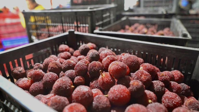 凌晨4点多,70岁的老人孙庆芳就拿着背篓上山采摘了,“和其他地方的杨梅不一样,我们这的东魁杨梅又大又甜,口感非常好”,他将颗颗杨梅小心翼翼的摘下,经过预冷、打包,准备运往叮咚买菜的分选中心。