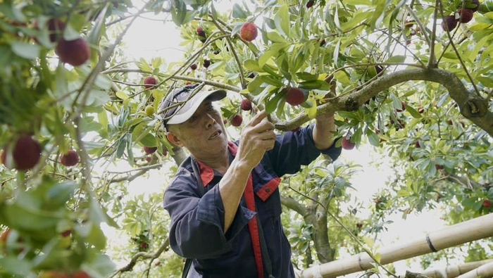 孙庆芳是台州市临海伍友果蔬专业合作社的一名果农,有30多年杨梅种植经验,他种植的100亩杨梅今年长势喜人,一棵树产量最高达300斤,他的儿子孙科则是这家果蔬合作社的负责人。