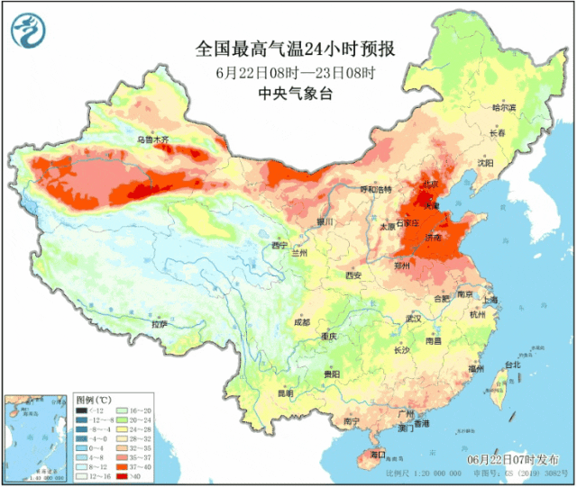 具体来看,中央气象台今天(22日)6时继续发布高温黄色预警:预计白天,北京、天津、河北、河南北部、山东、安徽北部、江苏北部、新疆南疆盆地和吐鲁番盆地、内蒙古西部和东南部、辽宁西部、福建东南部、雷州半岛、海南岛北部等地有35~37℃高温天气。其中,新疆南疆盆地、内蒙古西部、河北中南部、北京、天津、山东中西部、河南北部等地部分地区最高气温37~39℃,局地可达40℃以上。