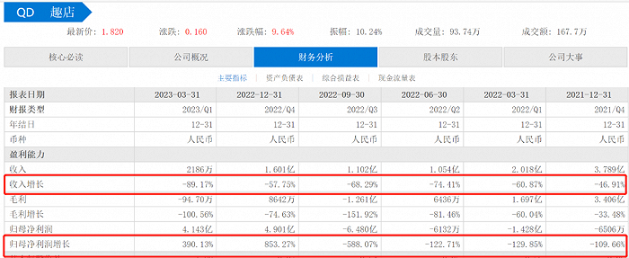 趣店营收和利润之比令人大开眼界,一季度趣店的总营收2186万元,同比去年同期的2.018亿元暴跌了89%。