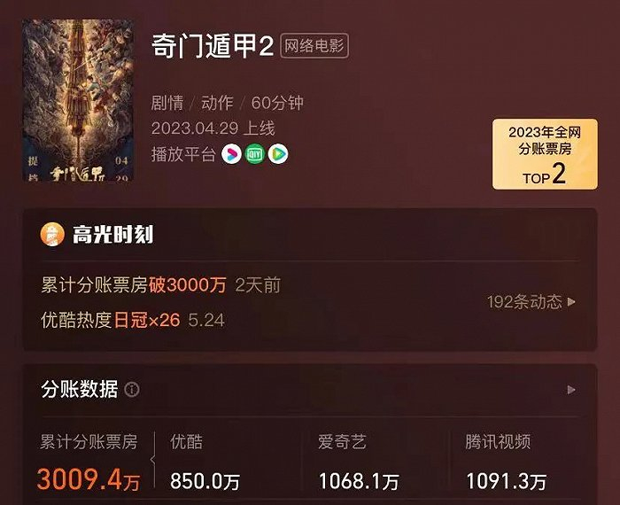 而2023年正好是国内线下消费市场全面复苏的阶段,电影市场尚且要与旅游等娱乐模式争夺档期客源,网络电影在没有突破性内容出现的情况下,自然是更被忽略的那部分。
