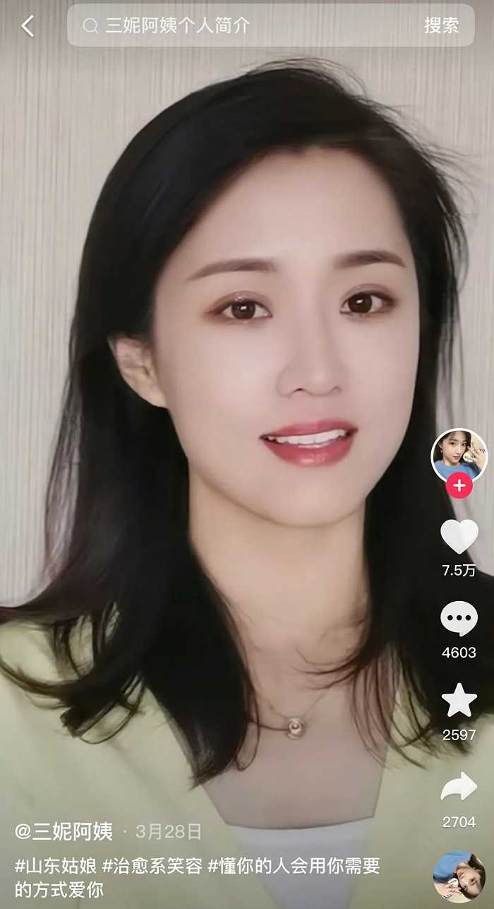 一笑倾城最大的优势就是笑容甜美,她也毫不吝惜一招鲜吃遍天,没有一个视频不在微笑。从颜值上说,倾城的脸盘子有点大,眉眼像白鹿和杨钰莹的混合,综合气质有点像周慧敏,但绝不是什么惊天地泣鬼神的大美人。按路线来说,一笑倾城其实和三妮阿姨差不多,但三妮粉丝至今未突破千万,和一笑倾城已不是一个量级。