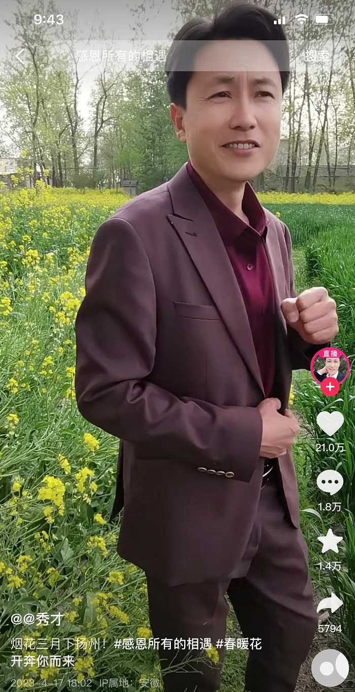 秀才,抖音账号“@秀才”,年龄自标39岁,2020年开始在抖音发布视频。视频内容较为统一,基本是对口型唱歌。歌单集中在中老年爱听的《像你爱我一样爱你》《你是我的人》《等你等了那么久》《何时了却这牵挂》《大眼睛》《火热的爱》。