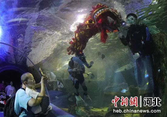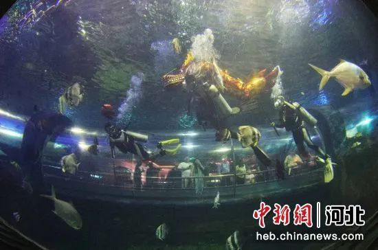 新澳海底世界内迎来许多游客前来游玩,观看“海底舞龙”、美人鱼表演、海豚海狮表演等。