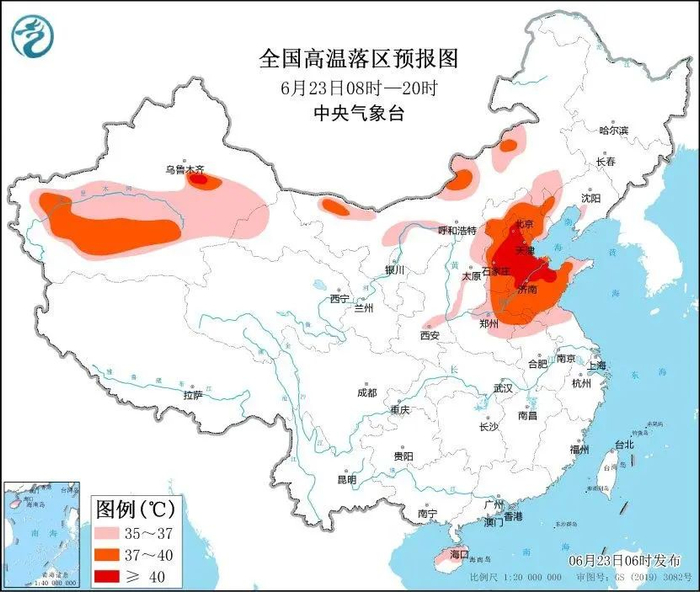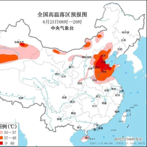 据央视新闻,中央气象台6月23日06时继续发布高温橙色预警:预计6月23日白天,华北、黄淮等地将继续出现35℃以上的高温天气,其中,北京、天津、河北、山东、河南北部和东部等地最高气温有37~39℃,北京、天津、河北中南部、山东北部等地的部分地区最高气温可达40℃左右;此外,新疆吐鲁番和南疆盆地、内蒙古西部和中部偏北地区等地也有35~38℃的高温天气,吐鲁番局地最高气温可达40℃左右。