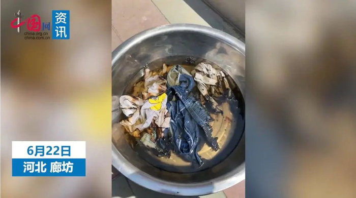 据中国网,6月22日,河北廊坊。41℃高温天,女子出门回来后,发现盆里的衣服竟然被晒冒烟,几件衣服全都有被火烧过的痕迹。