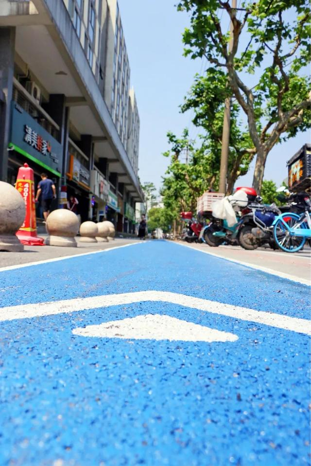 增设蓝色漫步道,为市民健康生活开辟新的空间。对学校周围的漫步道进行特别设计,在翔殷幼儿园门口增绘彩色波点,在杨浦小学门口增绘线条,为街区增添活泼元素。