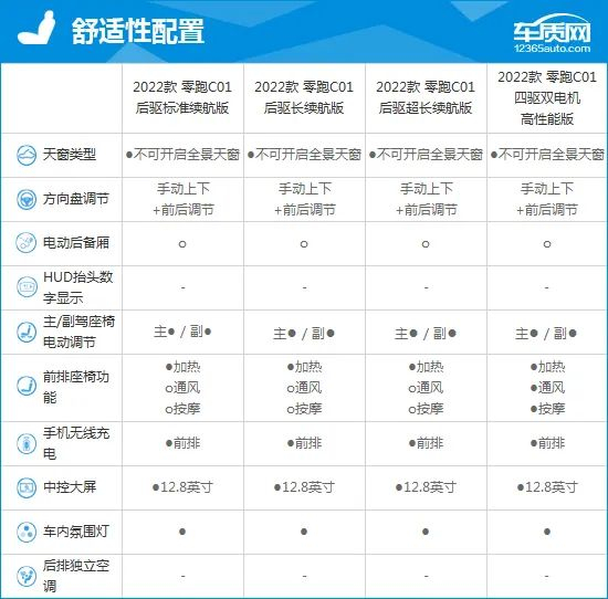 通过配置对比不难发现,2022款零跑C01的整体表现较为出色,即便是入门车型,依然可以满足日常使用所需,同时该车还提供多种续航版本,丰富了消费者选择余地。在进阶配置上,2022款零跑C01包括舒适性、科技性以及安全性配置表现都很全面,并且还提供了选装配置。