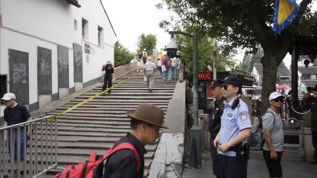 来朱家角古镇不可错过的必定是放生桥,放生桥上人流如织,一名游客告诉记者,站在桥上看船只来来往往,听桨橹划船声,十分治愈。为防止人员聚集、拥挤,放生桥中间拉起了警戒隔离带,民警不断提醒游客注意安全,并特意设置了现场交通指挥岗,便于及时发现并疏通拥堵地段。