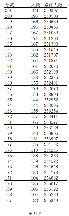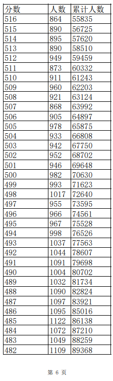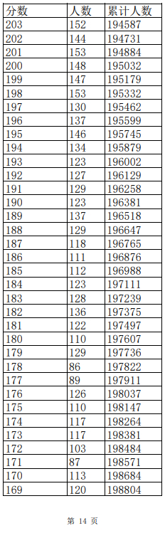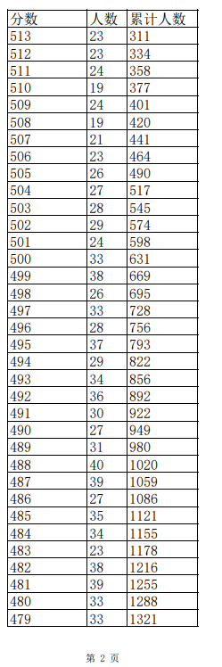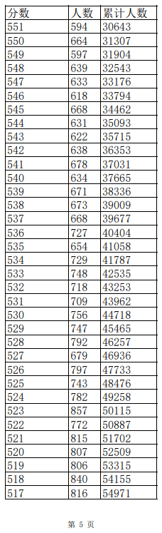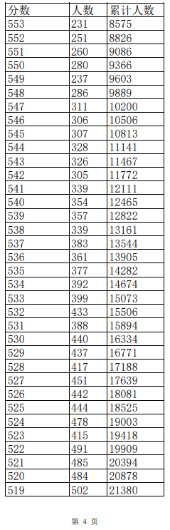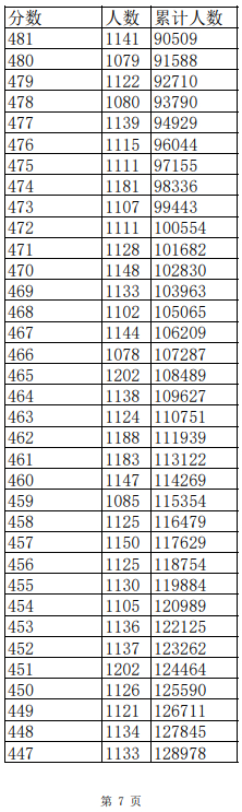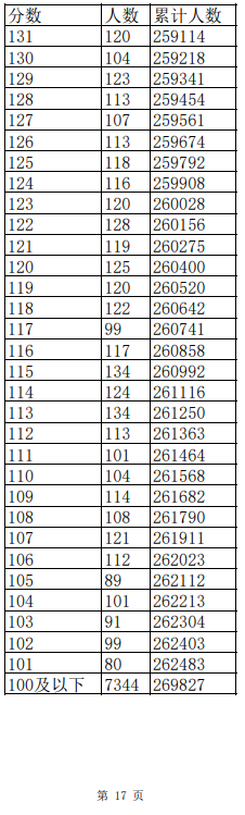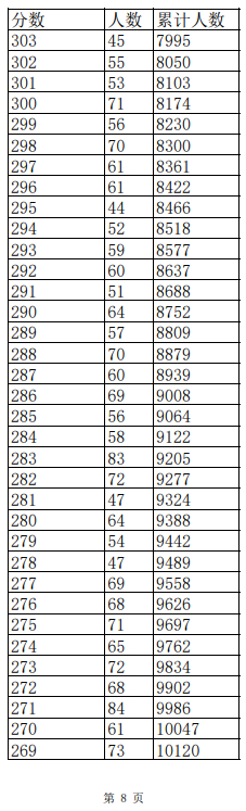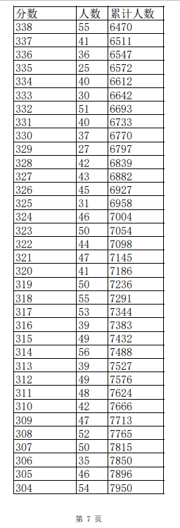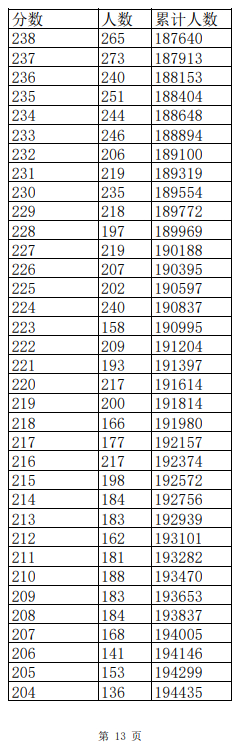 2023年普通高考一分一段表