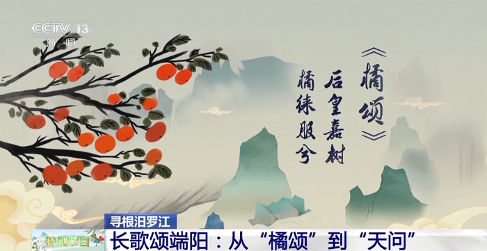 两千多年前,屈原写下中国历史上第一首咏物四言诗《橘颂》,“后皇嘉树,橘徕服兮”。他选择做一棵坚定的橘树,永远忠于自己的故土。他曾“以兰为侣,以蕙为伴”,明志自勉,写下许多不朽诗篇。他不畏坎坷、心系百姓,面对千难万险,他说:“诚既勇兮又以武,终刚强兮不可凌”;他仰望宇宙发问苍穹,“路漫漫其修远兮,吾将上下而求索”。