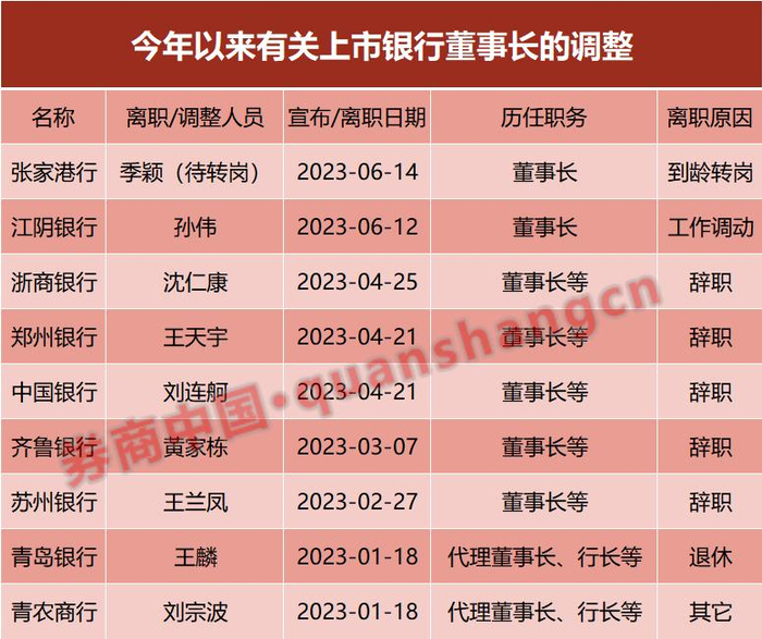 转岗、退休、换届…上市银行密集调整董监高成员,年内达百余起
