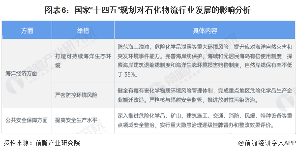 我国“十四五”规划发布后,从海洋经济和公共安全保障两方面对石化物流提出发展要求。海洋生态环境上,要防范海上溢油、危险化学品泄露等重大环境风险,重点地区危险化学品生产企业搬迁改造。公共安全保障方面,要提高石化行业,特别是危险化学品领域安全整治,提高安全生产水平。