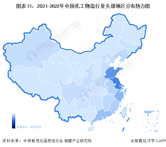 据中物联危化品物流分会数据., 2021-2022中国化工物流头部企业主要集中在华东地区。华东地区领跑全国化工物流行业的发展。具体到省市来看,江苏省化工物流头部企业数量分布最多。