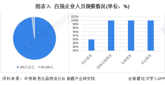 据中物联危化品物流分会数据,从化工物流行业头部企业人员规模来看,人员规模在100人以上的企业占比达到98%,同比增长1%,人员规模低于100人的企业仅占2%。
