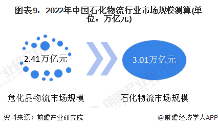 据中国物流与采购联合会发布的《中国物流与采购》期刊,随着我国化工行业的快速发展以及石油化工产业链的不断延伸,危化行业物流需求急剧增加,目前我国石油和化工产品品种超4.2万个,其中80%以上是危化品。据危化品物流协会数据,2022年我国危化品物流市场规模2.41万亿元,前瞻初步统计,2022年,中国石化物流市场规模为2.8万亿元。
