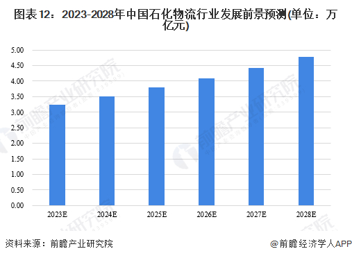 当前化工行业结构调整、市场日益集中、竞争不断加剧的情况下,化工企业对物流环节的专业化需求增加,越来越多的石油化工综合型企业将物流环节的业务剥离,而选择第三方专业物流服务商。第三方物流的产生是社会专业化分工的体现,石油化工行业企业通过将非核心业务外包给专业公司,可以更倾向于将有限的资源集中发展核心业务。因此,石化物流行业的发展前景广阔。前瞻预计到2028年,中国石化物流市场规模将突破4.7万亿元,2023-2028年均复合增长率约8%。
