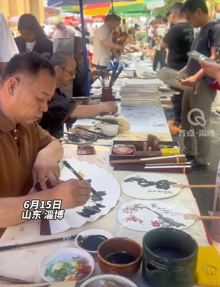 各地书画名家云集,平时一画难求,现在正在大街上给游客画几十块一把的扇子。
