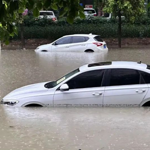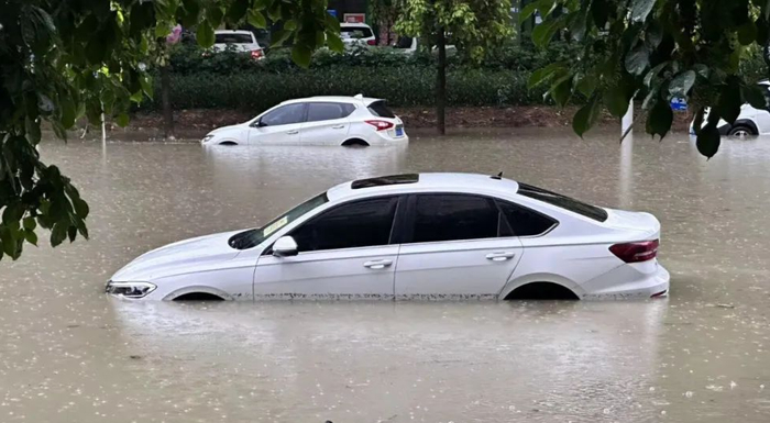 6月24日,南宁市区出现持续数小时降雨,兴宁区秀田路西侧道路出现积水,导致多辆汽车被浸泡。邹财麟 摄