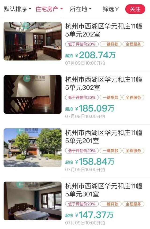 杭州西湖区华元和庄11幢的4套法拍房源,