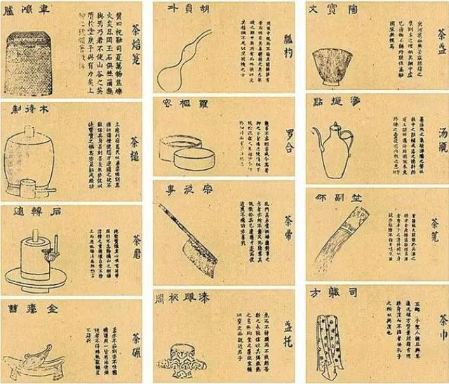 宋代则有审安老人写的《茶具图赞》,这是我国第一部以图谱形式写茶事的专著。他用白描画法画了宋代斗茶所用的十二件茶具,这十二件茶具也被称为“十二先生”,以汤平和黑釉盏茶显为主,是宋代茶艺器具的代表。但略有遗憾的是,“十二先生”只有图,没有尺寸,所以现在仿制会比例失调。