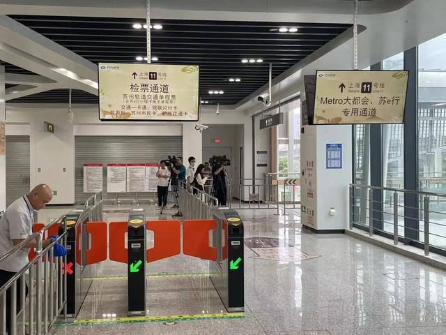中间通道主要是为了方便乘客进出站,从该通道乘坐苏州轨道交通11号线或者上海地铁11号线,都需要进行安检、购票或刷卡进站乘车。